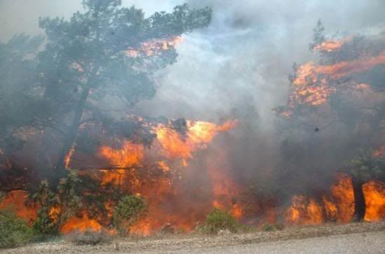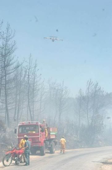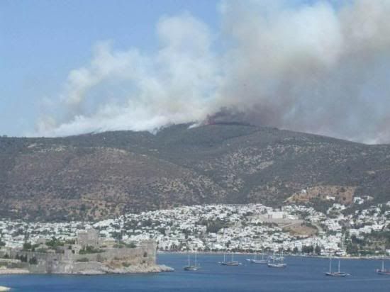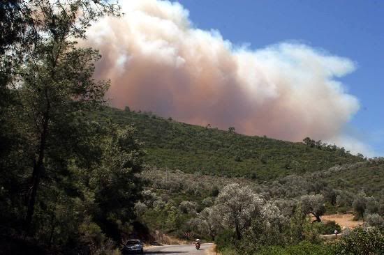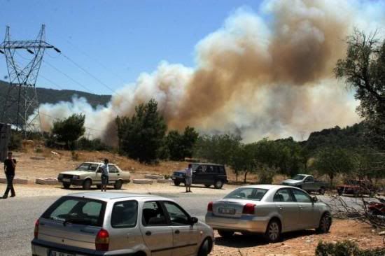 Bodrum YanıyorBodrum’da yangın kábusu ![]() Bodrum’da Torba Kavşağı’ndaki Kızılağaç ormanlarında çıkan yangın çok şiddetli rüzgar nedeniyle kontrol altına alınamadı Kızılağaç Köyü kısmen boşaltıldı, Yalı Beldesi trafiğe kapatıldı Alevler Bodrum girişine kadar ulaşırken, polis ve jandarma gönüllü toplamaya başladı Dumandan etkilenen 20 kişi hastaneye kaldırıldı Orman Genel Müdürlüğü, yangınının dün akşam saatlerinde kontrol altına alındığını ve soğutma çalışmalarının devam ettiğini bildirdi![]() ![]() BODRUM’da dün sabah başlayan ve akşam saatlerine dek kontrol altına alınamayan orman yangını nedeniyle tam bir kábus yaşadı Kızılağaç Köyü’nde 1 itfaiye aracı, 1 otomobil, 6 ev, 1 kamyonet yanarken, çok sayıda kümes hayvanı telef oldu Yangından etkilenerek Bodrum Devlet ve özel hastanelere kaldırılanların sayısı 20’yi buldu Kızılağaç Köyü jandarma tarafından kısmen boşaltıldı Yangın nedeniyle Bodrum’un elektrikleri kesildi Yangın için gönüllü toplandı ve bölgede neredeyse seferberlik ilan edildi![]() ![]() İŞÇİLER ALEVLERDE KALDI Torba Kavşağı’ndaki Kızılağaç ormanlarında, dün saat 11 00 sıralarında yangın çıktı Yol kenarından başladığı tahmin edilen yangın, şiddetli rüzgárın etkisiyle, Kızılağaç, Çiftlik ile Pınarlıbelen Köyü’ne doğru hızla ilerledi Yangına 6 yangın söndürme uçağı, 2 amfibik uçak, 10 helikopter, 100’ü aşkın arazöz, 16 iş makinesi, 4 greyder, 50 su kamyonu, 30 traktör, 1000 orman işçisi, 400’e yakın kişi, tatil köyleri ve otellerin personeli müdahale ederken, Bodrum Belediye Başkanı CHP’li Mazlum Ağan ile Emniyet Müdürü Yılmaz Özden’in koordine ettiği çalışmalar alevlere yenildi Çevre il ve ilçelerden de yardım istendi![]() 3 ÇİFTLİK EVİ YANDI Yalıçiftlik yol ayrımında 1 otomobil ile 3 çiftlik evi alevlerin arasında kalıp kül oldu Bodrum itfaiye ekipleri, yangının ortasında kaldı İtfaiye işçileri, hortumlarını toplamadan, araçla kaçarak yanmaktan kurtuldu 4 itfaiyeci ile 20 kişi hastaneye kaldırıldı Kızılağaç, Yalı Beldesi ve Çiftlik köyleri ile Pınarlıbelen Köyü’ne giden yollar trafiğe kapatıldı Alevlerin tehdit ettiği Kızılağaç Köyü’nün boşaltılmasına karar verildi İlk etapta Kızılağaç Köyü’nde 40’tan fazla ev boşaltıldı Yangın Bodrum’un 2 kilometre kadar yakınına geldi, Kumbahçe Mahallesi tepelerine ulaştı Torba Kavşağı’nda turistler de yangını üzüntü ve heyecan içinde izledi![]() ![]() ![]() ![]() ![]() ![]()