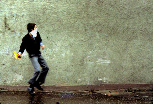 Başında miğfer, gözlerinde öfke  Yapabileceğim tek şeyi yaptım; fotoğrafını çektim ve o çocuğu belki de yanıtını hiç bir zaman bulamayacağı ve yanıtını kimselerin bilmediği sorularıyla başbaşa bırakarak oradan uzaklaştım