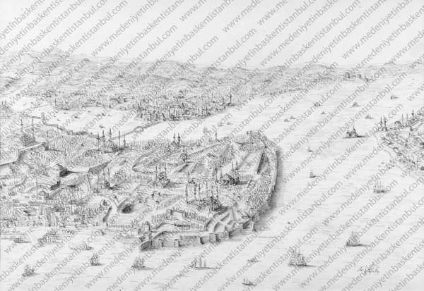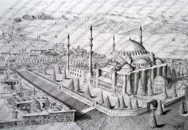 Medeniyetin Başkenti İstanbulMedeniyetin Başkenti İstanbul sergisi İstanbul’un tüm güzelliklerini anlatan ilk karakalem araştırma sergisidir ![]() Sergi, Türk kültürünü ve kültürün mimariye yansıması olan şaheserlerin çizimlerinden ve bu şaheserler hakkında geniş araştırmalardan oluşmaktadır bir yılı aşkın araştırma yapılarak üç yıla yakın bir süreçte çizilmiştir![]() Çizimde sanatçıya ait çizim tekniğinin yanı sıra geleneksel çizim tekniklerinin bir araya getirilmesi ile yeni bir tarzda çalışma yapılmıştır ( Minyatür ,tezhip,İşleme,hat ; karakalemin kendisine ait üslübu ile birleştirilmiştir ) Medeniyetimizin binlerce yıllık kültürünün mimariye yansımalarını takip ederek oluşturulan bu sergi 72 parça eserden meydana gelmektedir sergi alt konu başlıkları olarak ; Türk Evleri ,sokakları, Çeşmeleri,Hanları,Hamamları,Külliyeleri,kendi nden önceki medeniyetlerin izlerini taşıyan yapıları, yapılar üzerine işlenmiş El sanatlarını İstanbul’un eşsiz manzaralarıyla birleştiren bir çalışmadır RESSAM : Melikşah SOYTÜRK ARAŞTIRMACI : Burak YAMAÇ ADALET KULESİ VE TOPKAPI SARAYI Osmanlı Devleti nde adalet ilkesi önemli bir yere sahiptir Topkapı Sarayı nın şehrin en yüksek teperlerinden birine inşa edilmesi; Saray ın en yüksek yapısının da Adalet Kulesi olması adalet kavramına verieln değerin mimari ile sembolleştirilmesini sağlamıştır![]() ADALET KULESİ VE TOPKAPI SARAYI Osmanlı Devleti nde adalet ilkesi önemli bir yere sahiptir Topkapı Sarayı nın şehrin en yüksek teperlerinden birine inşa edilmesi; Saray ın en yüksek yapısının da Adalet Kulesi olması adalet kavramına verieln değerin mimari ile sembolleştirilmesini sağlamıştır![]() ANADOLU HİSARI İstanbul un Anadoluhisarı semtinde, Göksu Deresi nin İstanbul Boğazı na döküldüğü yerdedir 1395 te Yıldırım Bayezid tarafından, Osmanlı nın İkinci İstanbul Kuşatması için yaptığı hazırlıkların bir parçası olarak inşa edilmiştir Anadoluhisarı, 7 000 metrekarelik bir alan üzerine, Boğaz ın en dar noktası olan 660 metre mesafedeki bölgeye inşa edilmiştir Fatih Sultan Mehmet, Rumeli Hisarı nı yaptırırken bu kaleye dış surlar ekletmiştir Anadoluhisarı, iç ve dış kale ile bu kalelerin surlarından oluşur İç kale, dikdörtgen biçimindeki dört katlı kuledir İlk yapıldığında bir giriş kapısı bulunmadığı için kuleye iç kale surlarına uzanan bir asma köprüden giriliyordu Üst katlarına da içerideki ahşap merdivenlerle çıkılıyordu![]() AYASOFYA CAMİİ İmparator Justinianus ilk iki Ayasofya dan daha büyük bir kilise yaptırmak istemiş, çağın ünlü mimarlarından Miletos lu İsidoros ve Tralles li (Aydın) Anthemios a M S 532 - 537 yılları arasında günümüze ulaşan Ayasofya yı yaptırmıştır Ayasofya Camii Bizans dönemi mimarisinin ve sanatının en görkemli örneklerine sahip olan yapı, Mimar Sinan ın yaptığı Süleymaniye ve Selimiye Camii nin esin kaynağı oldu 916 yıl kilise olarak kullanıldıktan sonra 1453 yılında Fatih Sultan Mehmet in İstanbul u fethi ile birlikte camiye dönüştürüldü ve cumhuriyetin ilanından sonra 1935 yılında Atatürk ün emriyle müze olarak kullanılmaya başlandı![]() YENİKÖY YALILARI Yalılar boğazın o eşsiz doğal güzelliğin bozulmaması adına dikkatle inşa edilmişlerdir Boğazdaki ağaçların tahrip edilmemesine büyük özen gösterilmiş inşaat için mecburen ağaç kesenlere kestiklerinin iki katı ağaç dikme zorunluluğu getirilmiştir Ayrıca evlerin belirli bir yükseklikten fazla olmasına izin verilmeyerek yalılar arasındaki simetrinin korunması sağlanmıştır![]() DEFTERDAR EMİN ÇEŞMESİ VE BEYOĞLU NDAN BİR GÖRÜNÜM 1732 yılında yapılan bu çeşme İtalyan hastanesi karşısında Beyoğlu-Tophane arasındaki yokuşta bulunmaktadır Kesme taştan yapılmış olan çeşmenin iki yanında mihrap şeklinde dinlenme yerleri vardır Kitabenin nazımı Hattat Eyüplü Necip Efendidir![]() GALATA KULESİ 1384 yılında Cenevizliler tarafından Galata surlarına ek olarak yapılmıştır 1402 yılındaki 4 Haçlı seferinde geniş çapta tahrip edilen kule 1445-1446 yılları arasında yükseltilmiştir Sultan III Murat ın müsaadesiyle Müneccim Takiyıddin tarafından buraya bir rasathane kurulmuştur 17 yüzyılın ilk yarısında yani IV Murat döneminde Hezarfen Ahmet Çelebi tahtadan yaptırdığı kanatlarla Üsküdar daki Doğancılar a buradan uçmuştur![]() GALATA YANI BEYOĞLU Osmanlı şehir mimarisinin önemli özelliklerinden biride kendisinden önceki medeniyetler ve bünyesindeki azınlıklara ait yapıların şehir mimarisi içerisinde kayda değer bir yer teşkil etmesidir Buda engin Osmanlı hoşgörüsünün önemli bir göstergesidir![]() İSTİNYE ÇEŞMESİ Çeşme, II Mahmut tarafından 1834 yılında yaptırlımış fakat günümüze ulaşamamıştırNUSRETİYE CAMİİ 19 yüzyılda İstanbul un Tophane semtinde inşa edilmiş bir camidir İlk olarak III Selim tarafından yaptırılmıştır II Mahmut yanan Camii yeniden yaptırmıştır Mimarının devrin mimarbaşısı Abdülhalim Efendi olma ihtimali yüksektir Buna rağmen kaynaklarda mimarı olarak Krikor Balyan geçmektedir Balyanlar Osmanlı da önemli müteahhit ailedir ama mimar değillerdir Cami o yıllarda İstanbul da etkin olan ampir ve barok üslup etkisiyle yapılmıştır Tek kubbeli, iki minarelidir Minareler çok ince ve yüzeyi olukludur Cami döşemesi mermerdir İç kısımdaki hünkar mahfili bütünüyle mermerdir Kafesi pirinç dökme ve altın yaldızlıdır 1823 yangınında bütün Tophane kül olduktan sonra II Mahmut semti ve camiyi yenilemiştir Yeni cami 1826 da ibadete açılmıştır Aynı yıl Padişah, Yeniçeri Ocağı nı topyekun kaldırdığı için Cami ye başarı, üstünlük anlamına gelen Nusretiye adı verilmiştirRUM